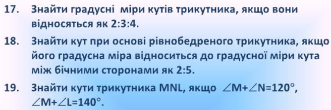 17.Найти градусные меры углов треугольника, если они относятся как 2:3:4.