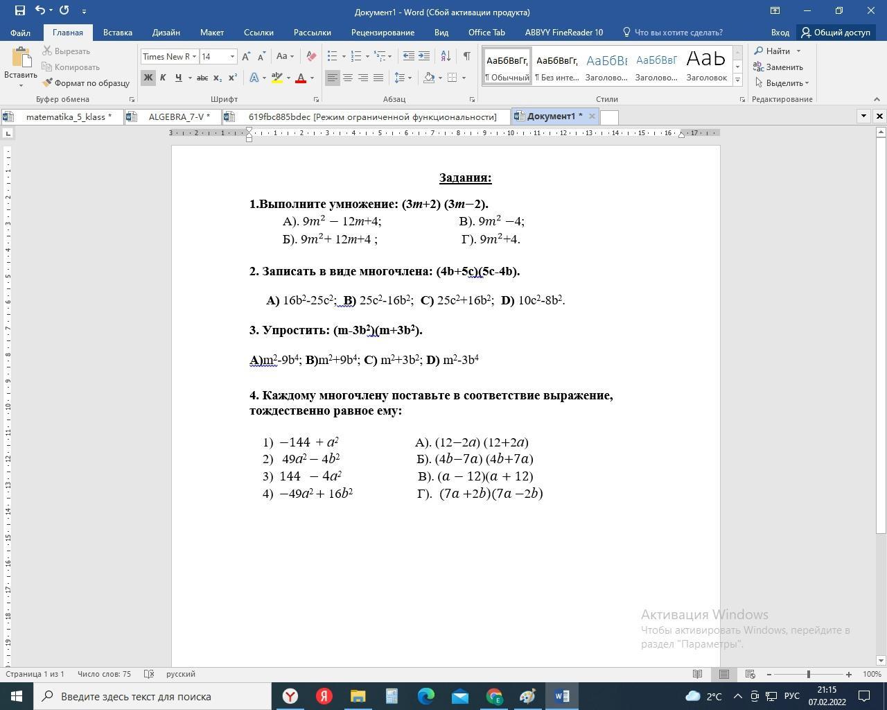 1)В, 2)В, 3)А, 4) 1В 2Г 3А 4Б