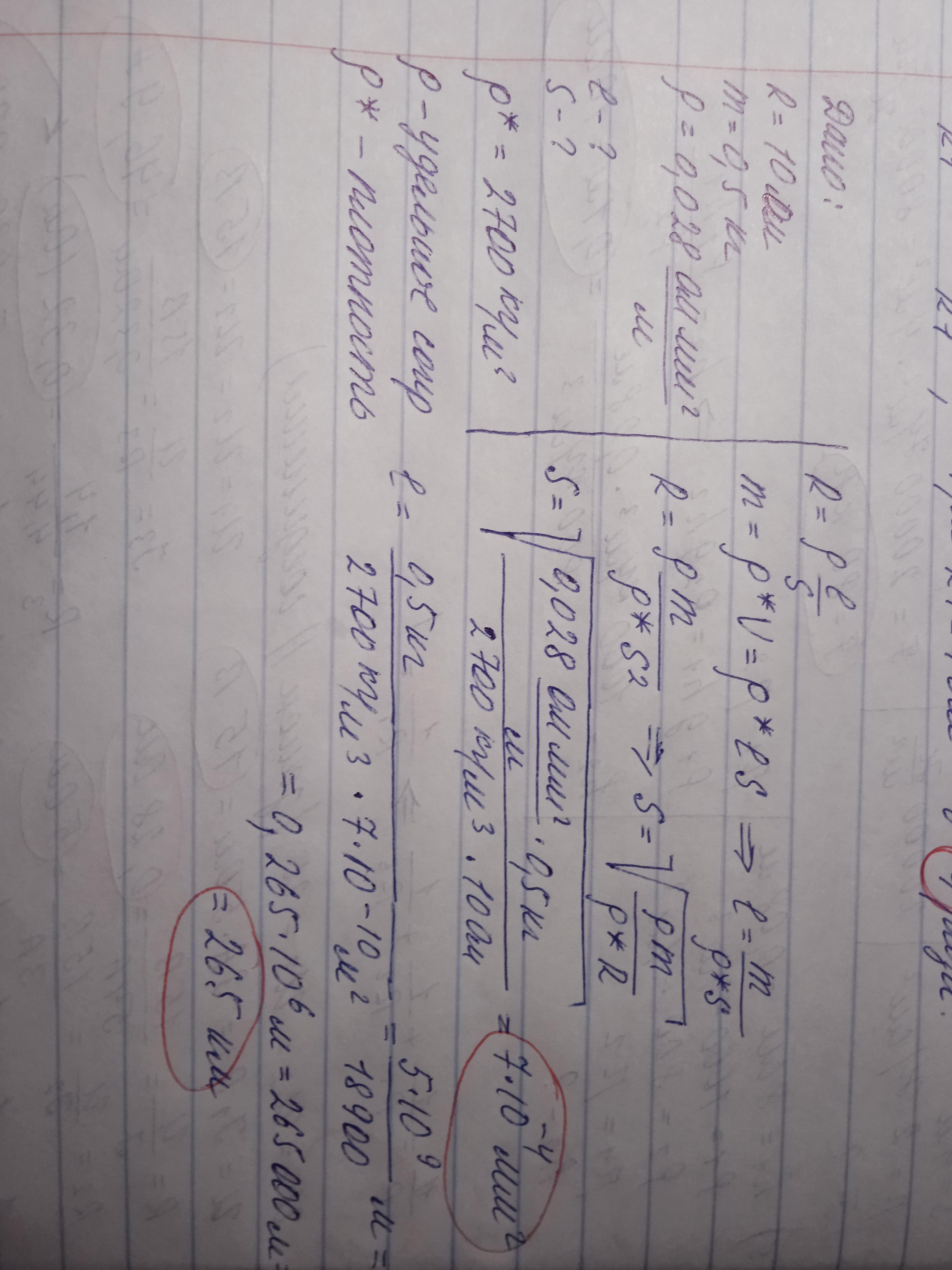Сопротивление проволоки из алюминия равно 10 Ом , её масса —0,5 кг . Найди длину и площадь поперечного сечения проволоки.