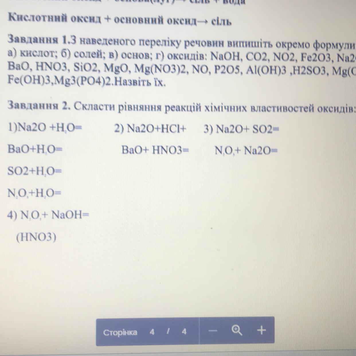 Завдання 2. Скласти рівняння реакцій хімічних властивостей оксидів: