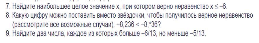 7) Из всех значений для х меньших или равных (-6), наибольшим будет значение (-6), т.к. все остальные целочисленные значения х, удовлетворяющих этому неравенству, будут меньше: (-7), (-8), (-9) и т.д.