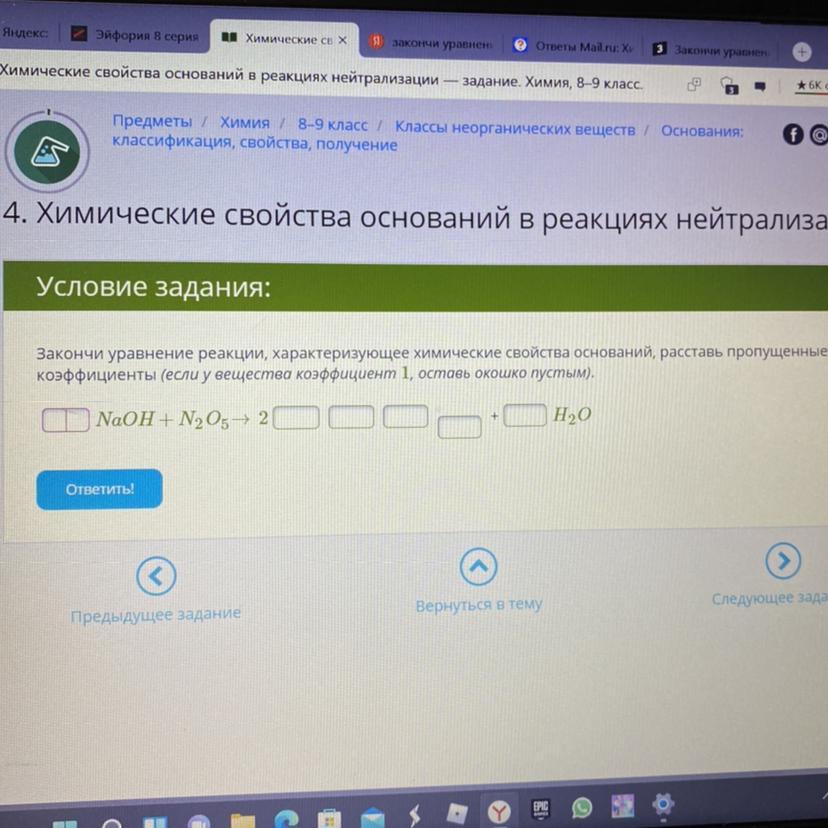 N2O5 + 2 NaOH → 2 NaNO3 + H2O