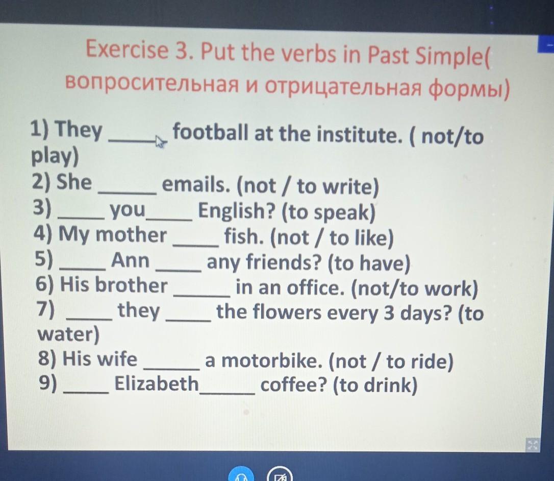 Нужно вставить пропущенные слова с окончанием ed или заменить неправильными глаголами