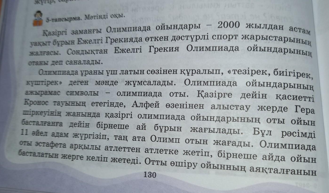 6-тапсырма. Мәтін мазмұны бойынша сұрақтарға жауап бер. Не болды? Не істеді? Кім? Кайтті?