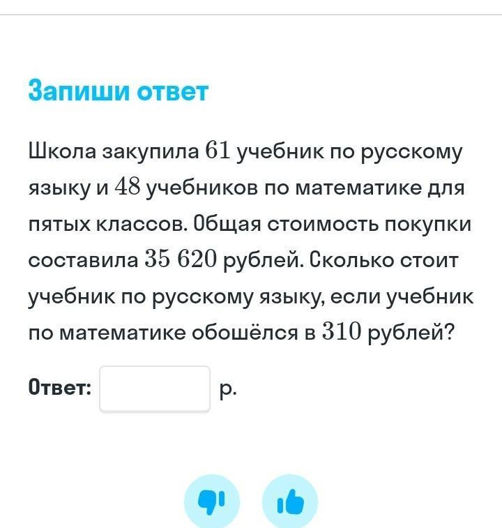 3) 20740/61=340(руб.)-стоит учебник по русскому языку.