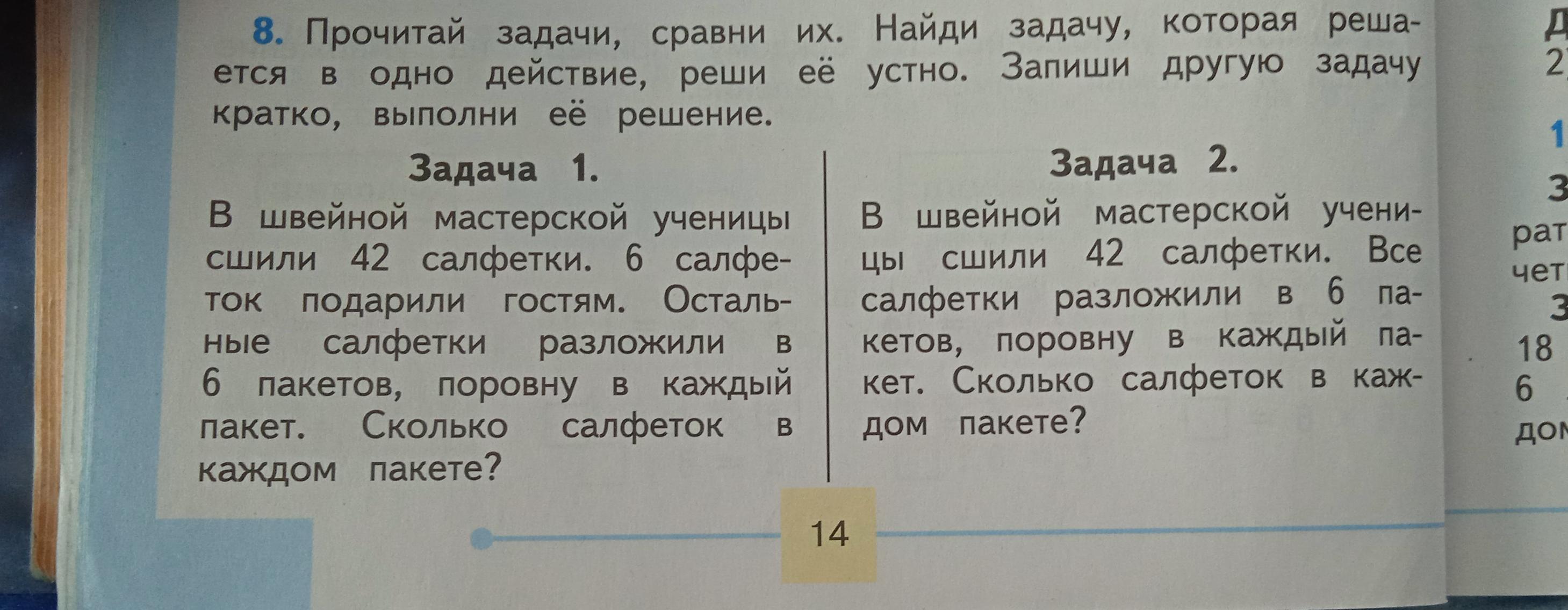 1) 42:6=7 (шт) салфеток в каждом пакете.