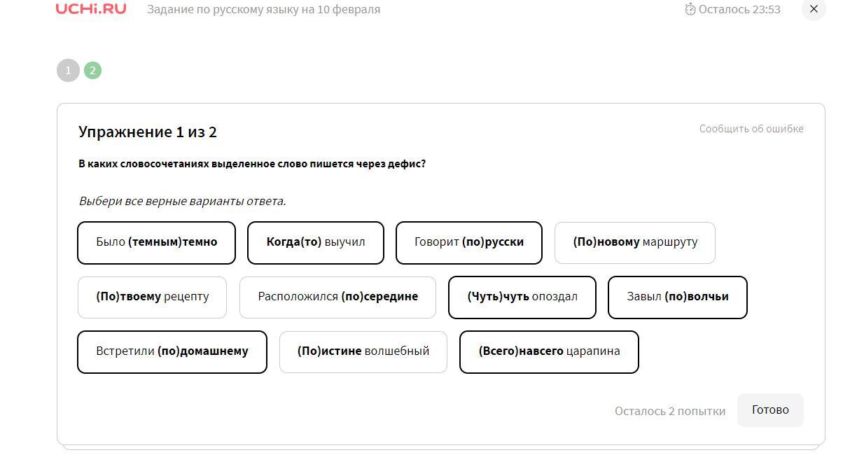 2. Пишутся через дефис: было темным-темно, когда-то выучил, чуть-чуть опоздал, говорит по-русски, завыл по-волчьи, встретили по-домашнему, всего-навсего царапина.
