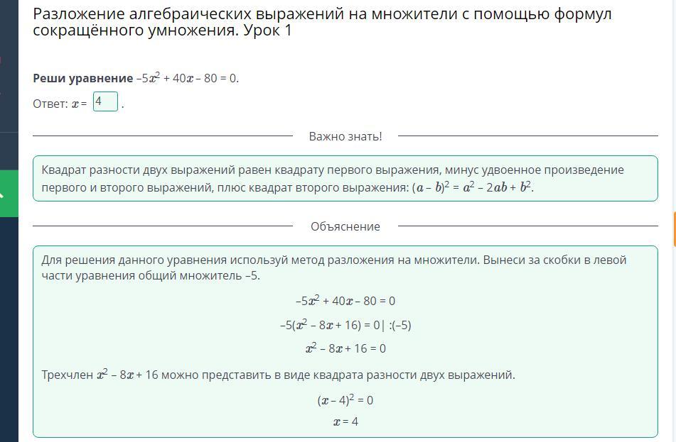 Разложение алгебраических выражений на множители с помощью формул сокращённого умножения. Урок 1