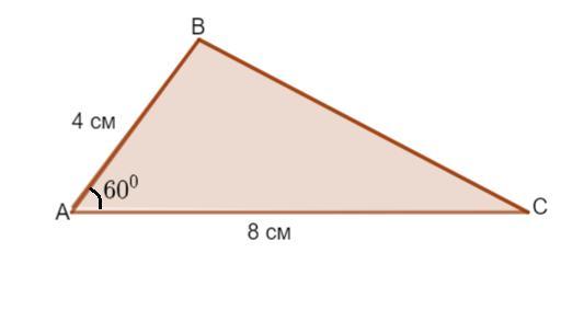 Пусть дан треугольник Δ АВС . АВ= 4 см, АС = 8 см, ∠ А =60°.