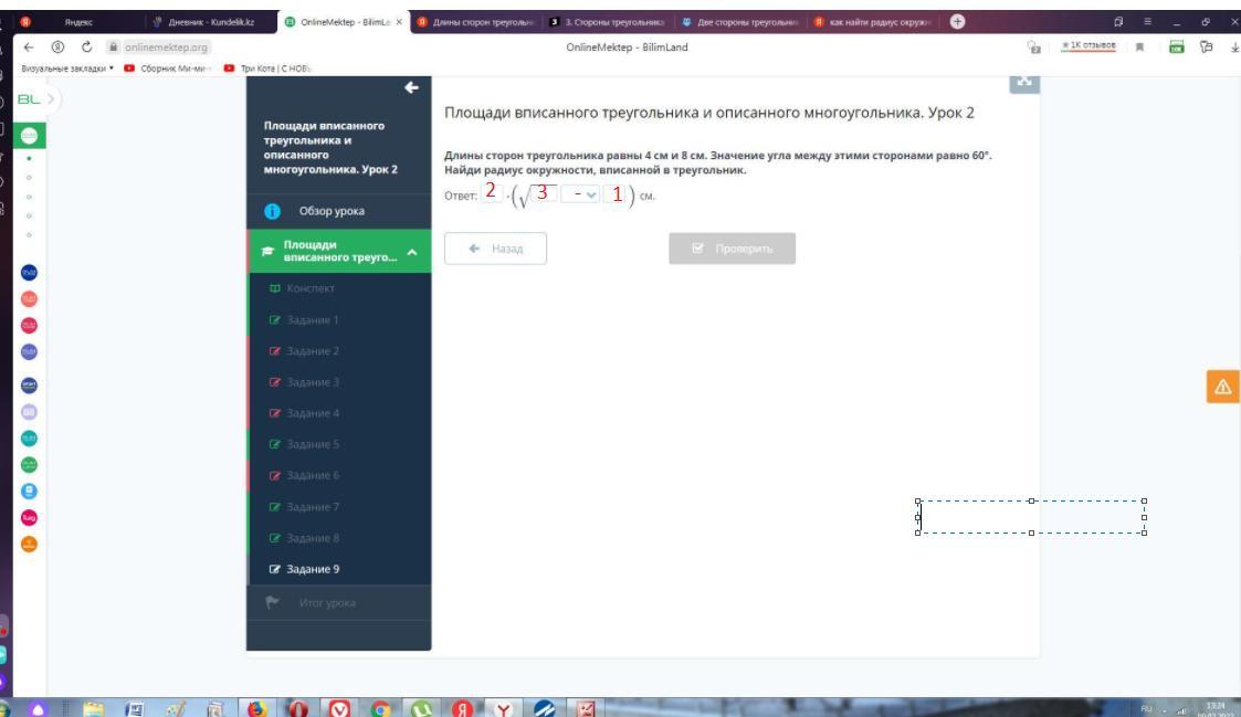 Тогда радиус окружности, вписанной в треугольник равен см.