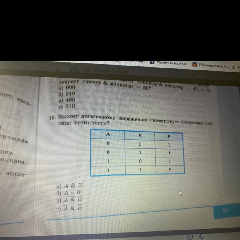 19. Какому логическому выражению соответствует следующая таб-