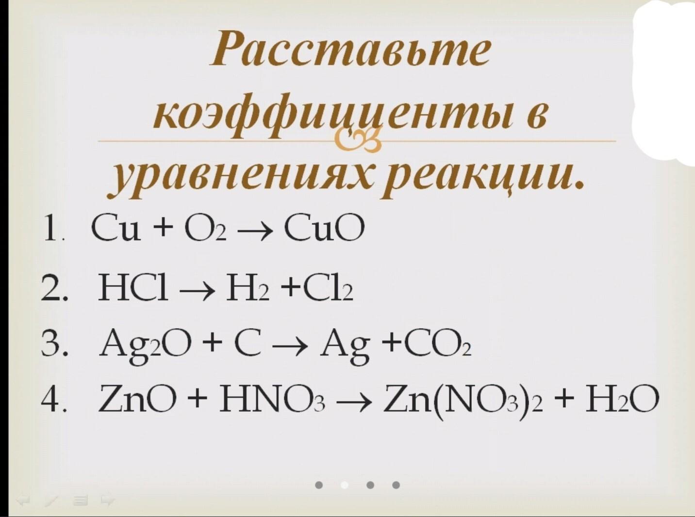 4. ZnO + 2HNO₃ ⟶ Zn(NO₃)₂ + H₂O