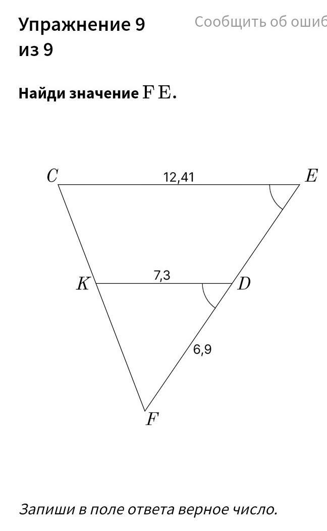 - ΔCEF подобен ΔKDF (два угла одного Δ соответственно равны двум углам другого) ∠Е=∠D ∠F-общий