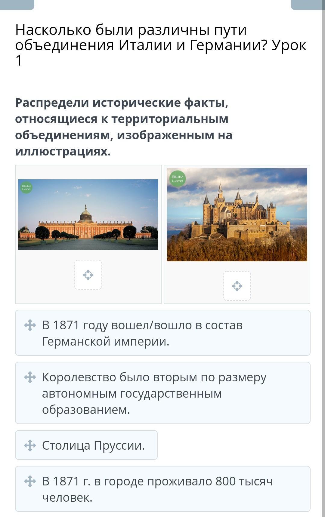 Насколько были различны пути объединения Италии и Германии? Урок 1 Распредели исторические факты, относящиеся к территориальным объединениям, изображенным на иллюстрациях. в1871 году вошёл/вошло в состав германской империи