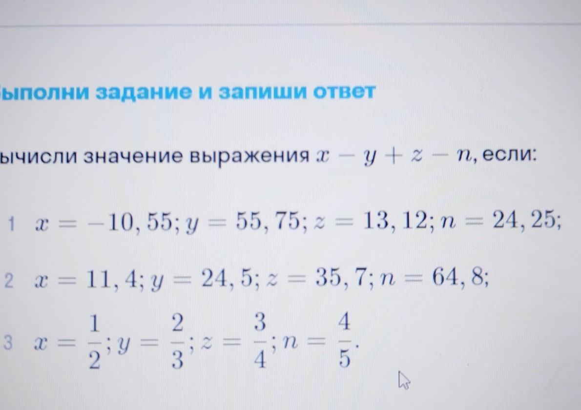 x - y + z - n = 1/2 - 2/3 + 3/4 - 4/5