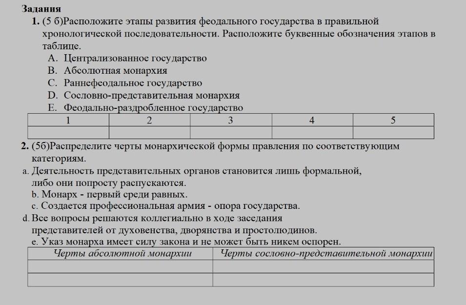черты абсолютной монархии: A, C, E
