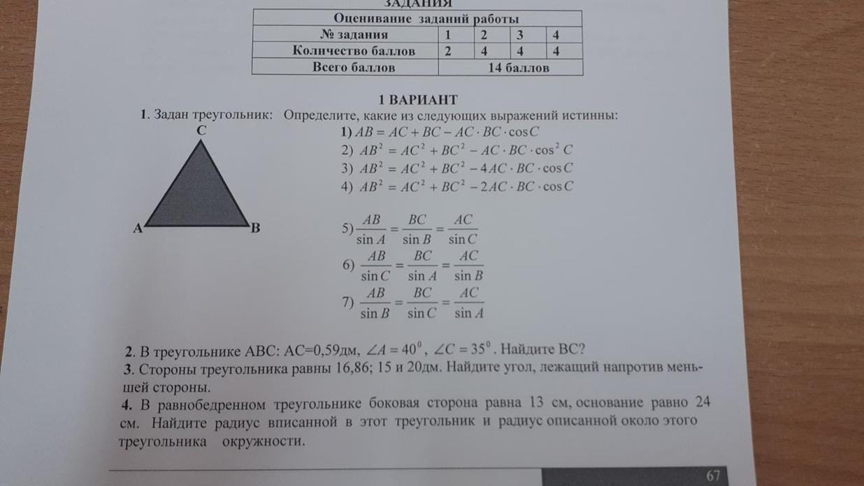 Задан треугольник. Определите, какие из следующих выражений истины:
