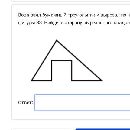 Вова взял бумажный треугольник и вырезал из него квадрат. Периметр треугольника 25, периметр полученной фигуры 33. Найдите сторону вырезанного квадрата.