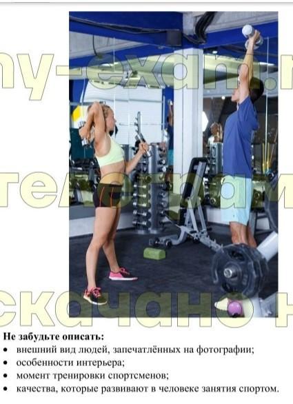 На фото изображенны два ухоженных человека в спортивной форме.Они занимаются в зале делая различные упражнения на развитие мышц рук.В зале так же видно некоторое спортивное оборудование.Когда мы занимаемся спортом мы становимся сильными,быстрыми и ловкими.