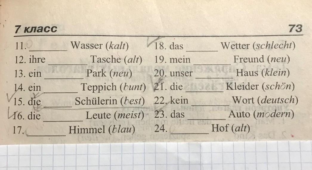 kalt Wasser, ihre alt Tasche, ein neu Park и так далее.. или я что-то не понимаю?