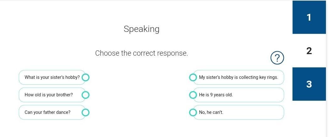 все ответы по прямой то-есть "what is your sister's hobby?" ->"my sister's hobby is collecting key rings" и так дальше.