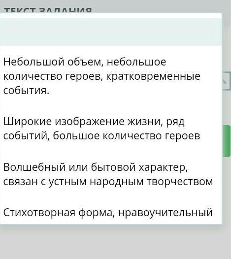Ответ:Небольшой объем, небольшое количество героев,кратковременные события. Думаю правильно, но точно не уверен.