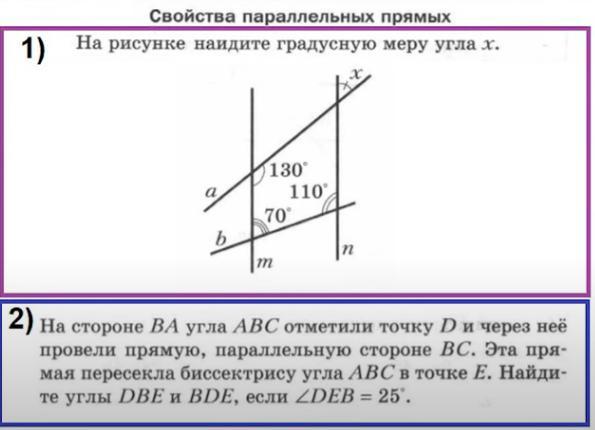 Далее по углу между двумя пересекающимися прямыми, мы можем сказать, что этот угол =x