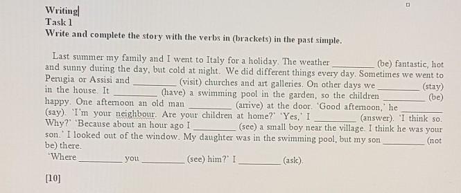 1. (be) was, 2. (visit) visited, 3. (stay) stayed, 4. (have) had, 5. (be) were, 6. (amive) amived, 7. (say) saw, 8. (not be) wasn't.