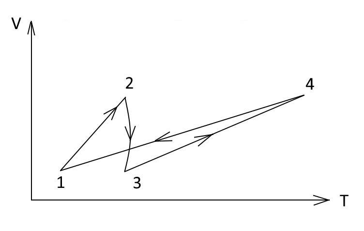 2-3 - объем уменьшается, а давление растет, но не по прямой, поэтому сложно его назвать изотермическим и на графике не будет выглядеть прямой