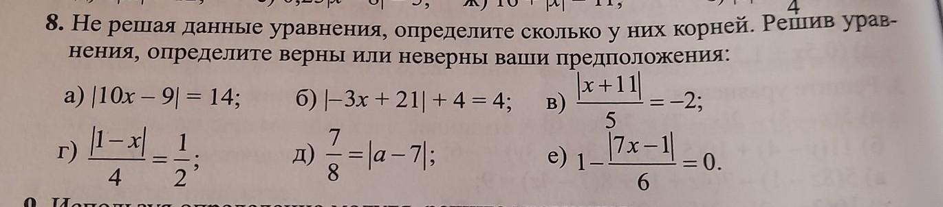 - 8. Не решая данные уравнения, определите сколько у них корней. Решив урар- нения, определите верны или неверны ваши предположения: