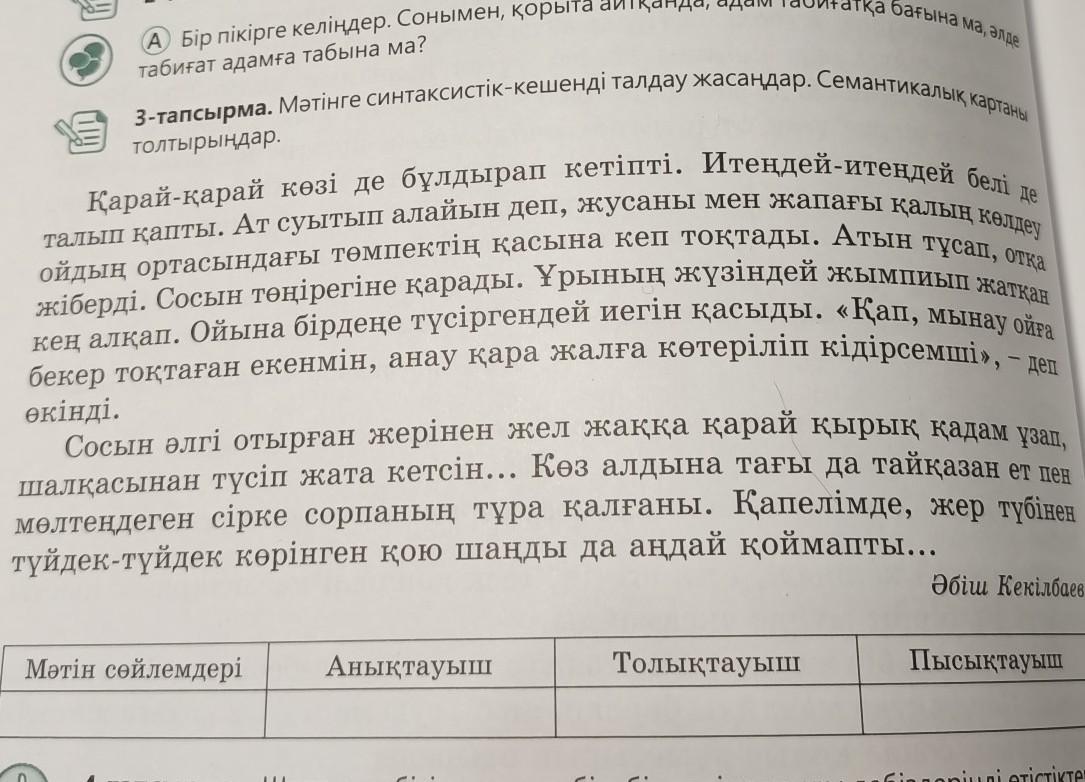 3-тапсырма. Мәтінге синтаксистік-кешенді талдау жасаңдар. Семантикалық картаны толтырыңдар.