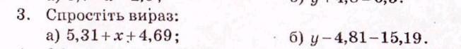 б) y - 4,81 - 15,19 = y - (4,81 + 15,19) = y - 20