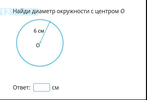 получается что диаметр равен 6 умножить на 2 то есть 12
