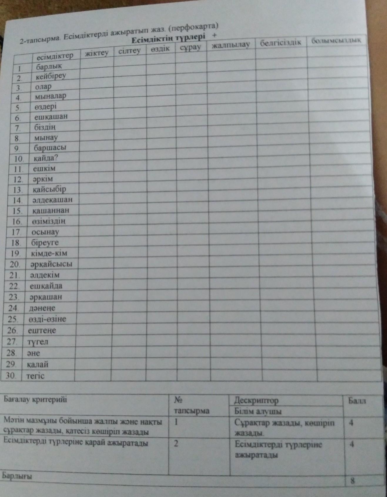 2-тапсырма. Есімдіктерді ажыратып жаз. (перфокарта) Есімдіктің түрлері + срочноооо керек тез тез пж пж главно дұрыс болу керек