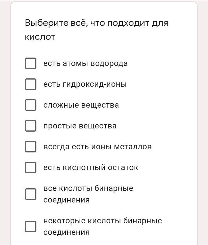 есть атомы водорода, сложные вещества, есть кислотный остаток