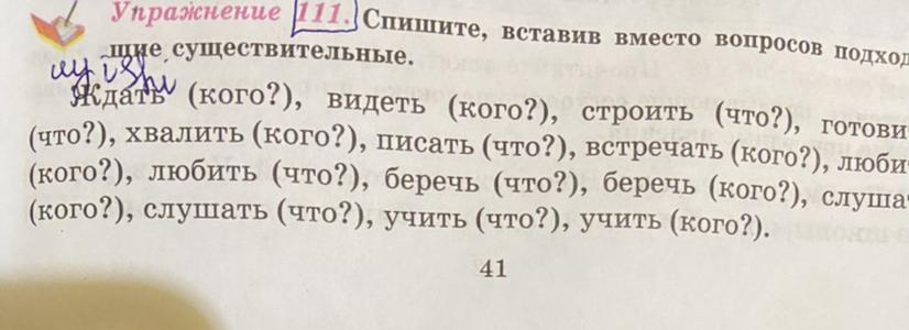 Ждать (кого?) маму, видеть (кого? ) учителя,строить (что?) дом ,готовить (что?) торт, хвалить (кого?) сестру,писать (что?) письмо,встречать (кого?) бабушку,любить (кого?) маму,любить (что?) телефон, беречь (что?) ожерелье,беречь (кого?)семью,слушать (кого?) Брата,слушать (что?) музыку, учить (что?) стих,учить (кого?) сестру.