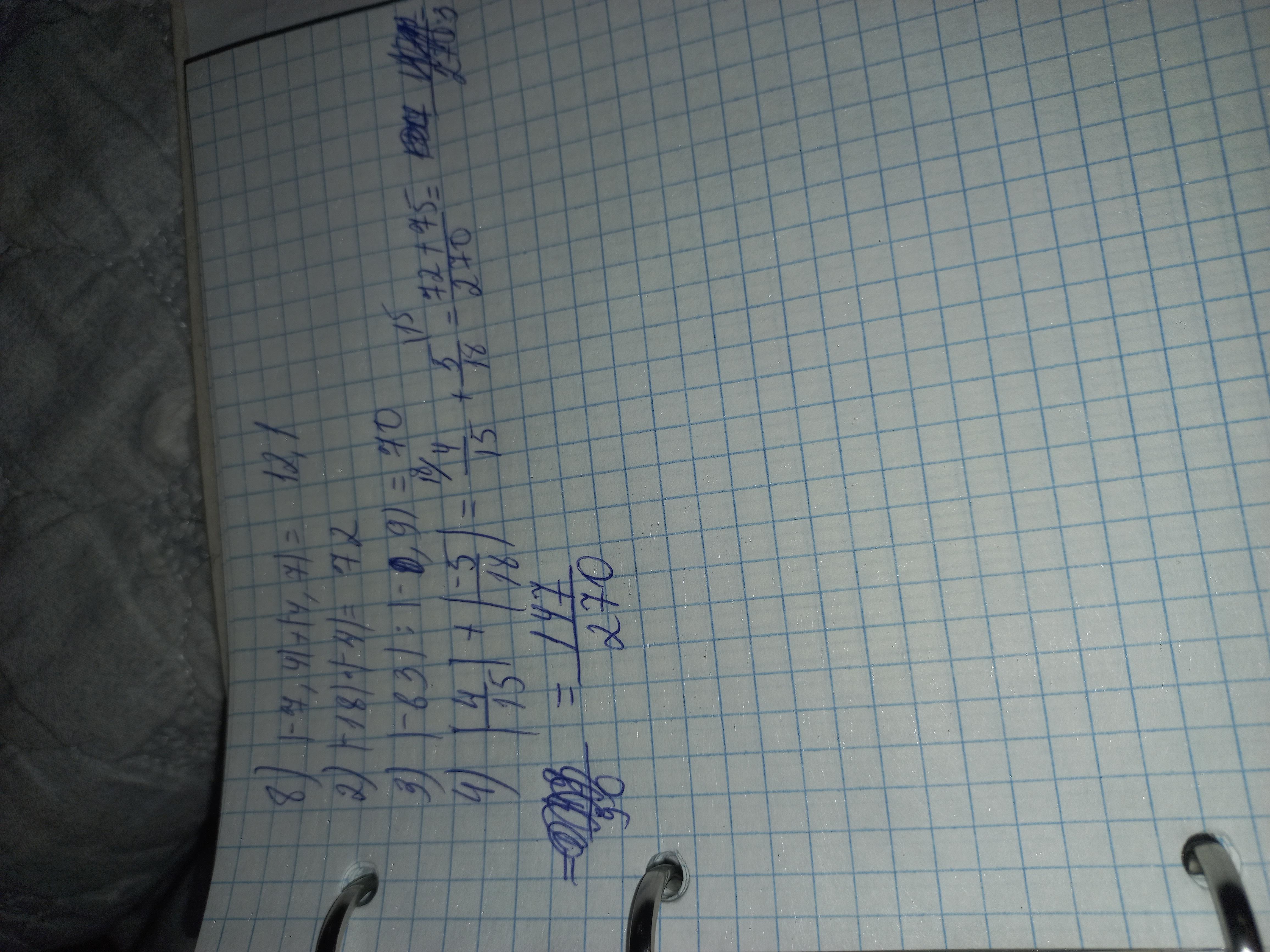 1) |–7,4| + |4,7|; 2) |–18| * |–4|; 3) |–63| : |–0,9| 4) |4/15| + |-5/18|