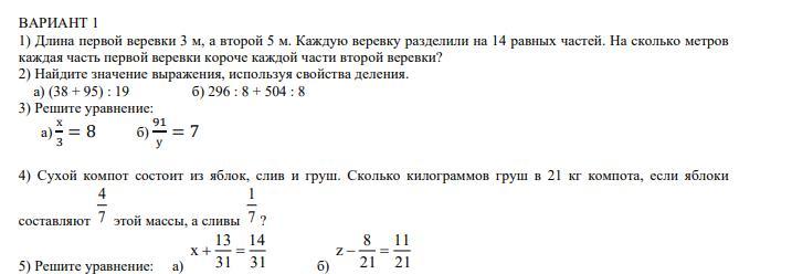 5 : 14 = 5/14 (м) - длина части второй веревки.