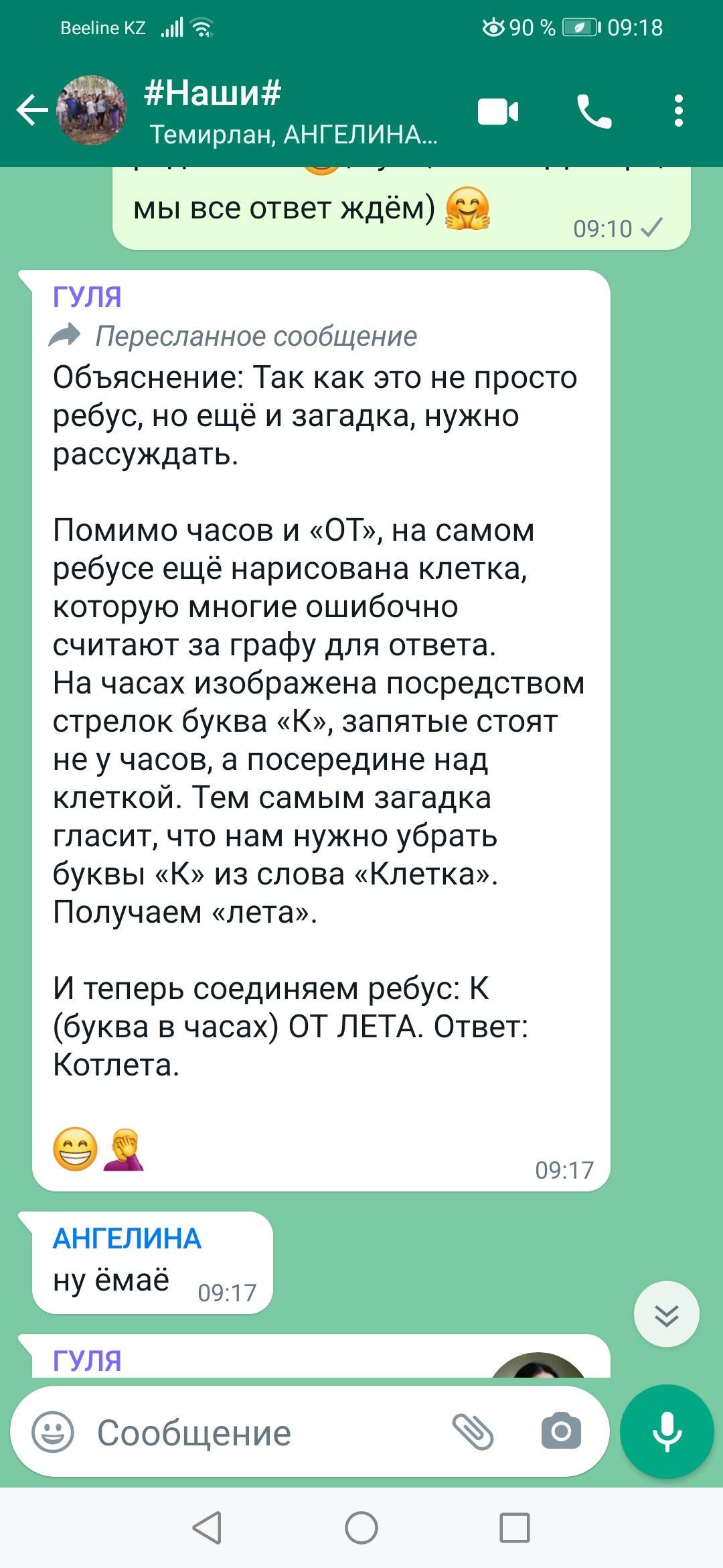 И теперь соединяем ребус: К (буква в часах) ОТ ЛЕТА. Ответ: Котлета.