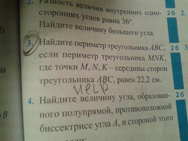 т.к. у нас соединены точки на серединах сторон, то мы получаем треугольник, стороны которого являются средними линиями большого треугольника, получаем