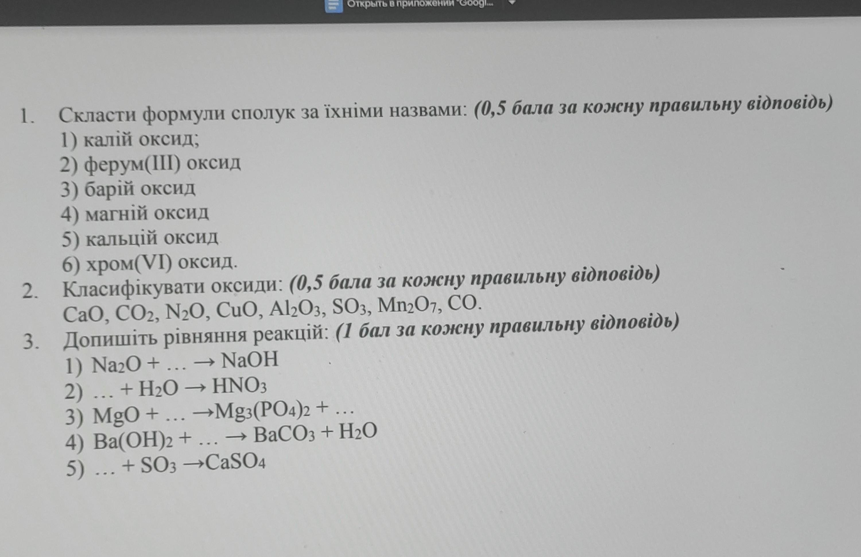 Солетворнi оксиди: CaO, CO2, CuO, Al2O3, SO3, Mg2O7