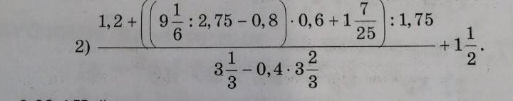 1,2 +(( 9 1/6 : 2,75 - 0,8) * 0,6 + 1 7/25) : 1,75)/ 3 1/3 - 0,4 * 3 2/3)) + 1 1/2 = 3