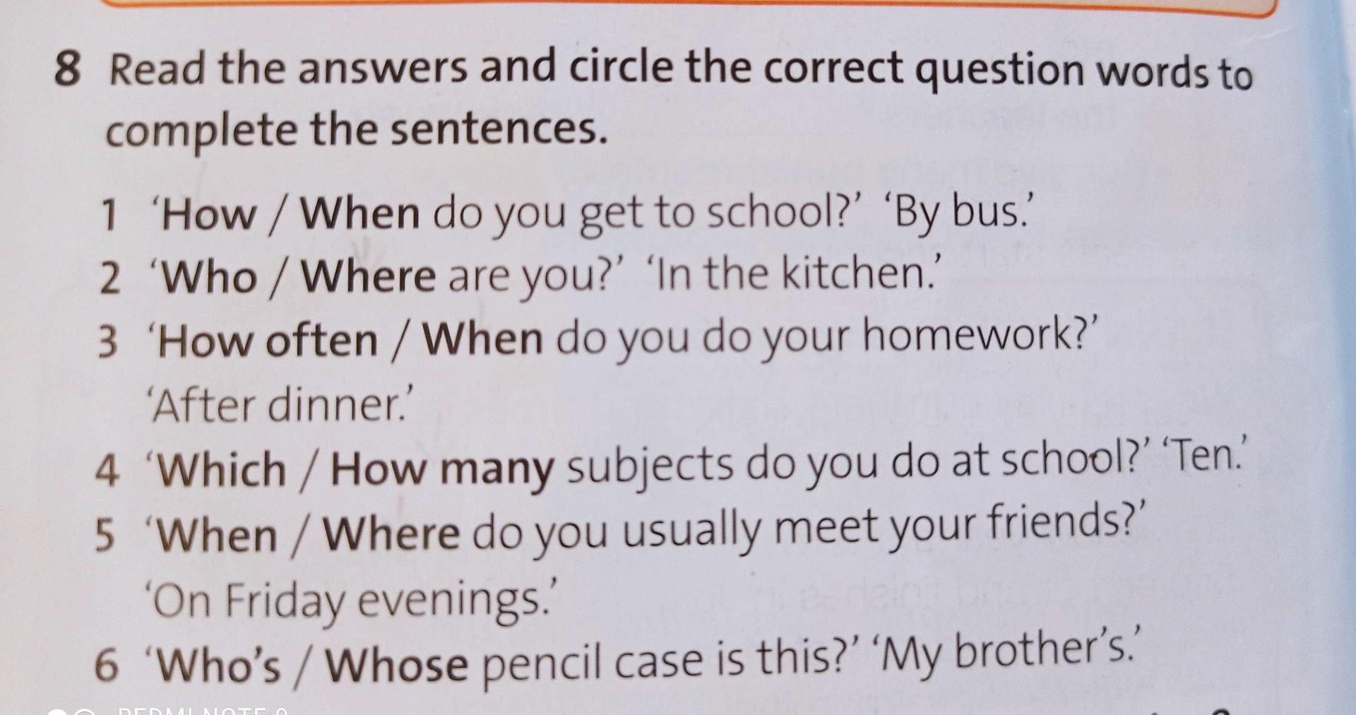 1 How, 2 Where, 3 When, 4 How many, 5 When, 6 Whose(?)