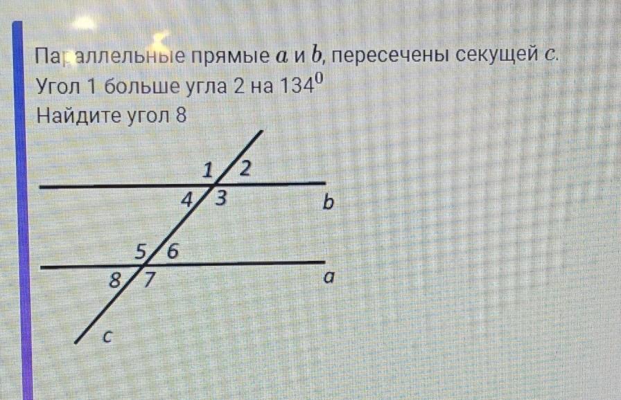 Угол 8 = углу 4 = 23° (как соответственные)