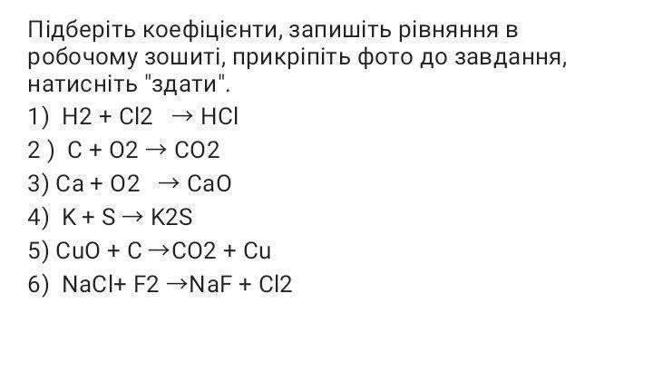 1)H2 + Cl2=2HCl