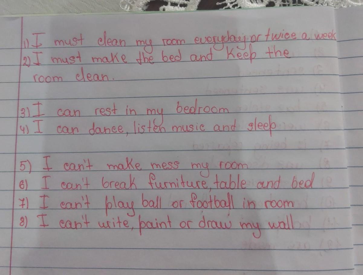 напишите My room rules 6 предложений, 2 c must, 2 c can't, 2 c can't. что можно и что нельзя делать в моей комнате. ТОЛЬКО ЛЁГКИЕ ПОЖАЛУЙСТА ПОМОГИТЕ