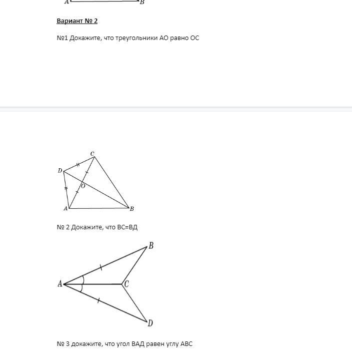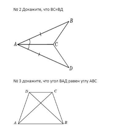 номер 2: треугольник авс и адс равны по углу и 2 сторонам ас - общая