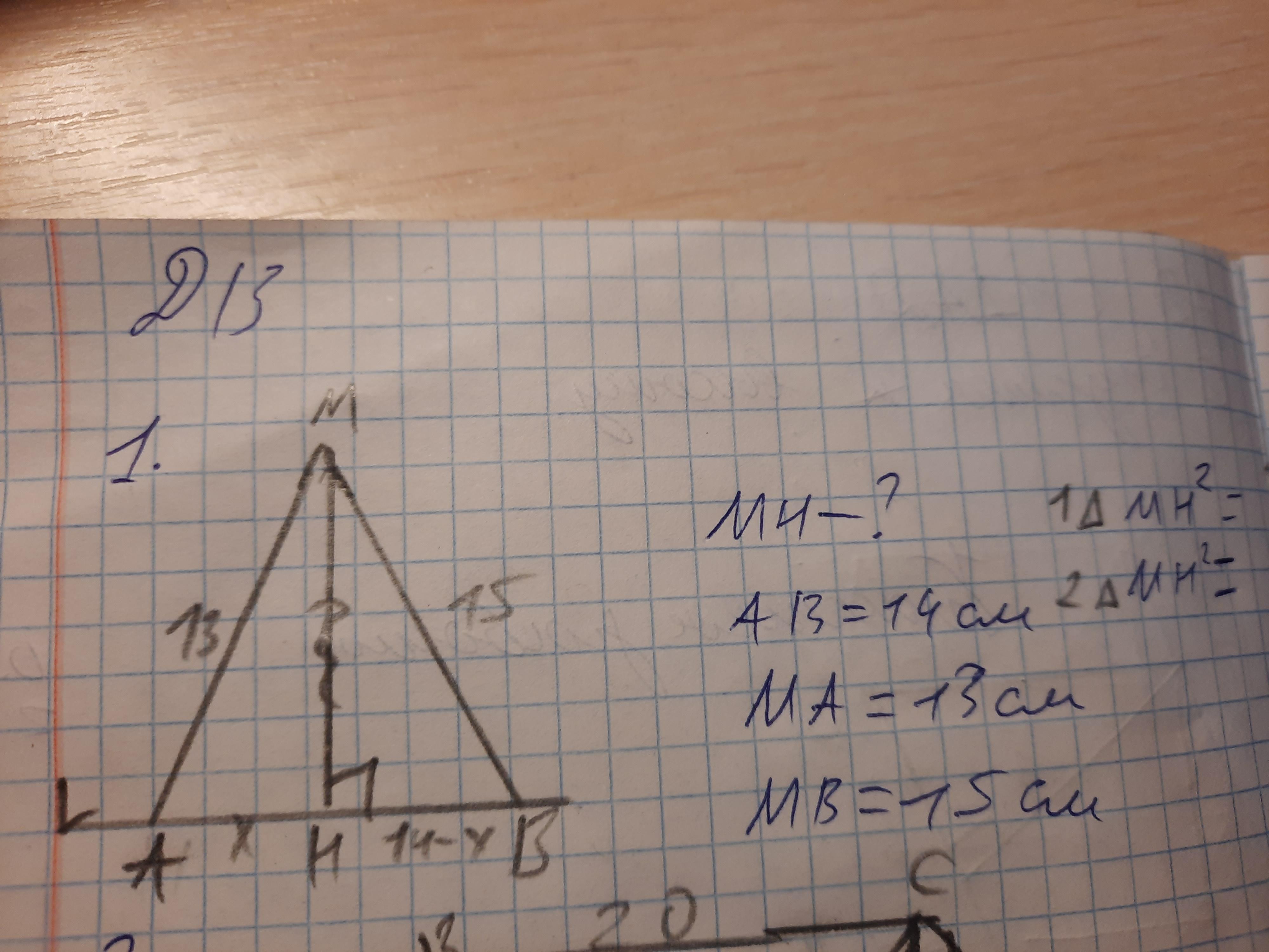 Надо приравнять значение высоты из треугольников МАН и ВМН.