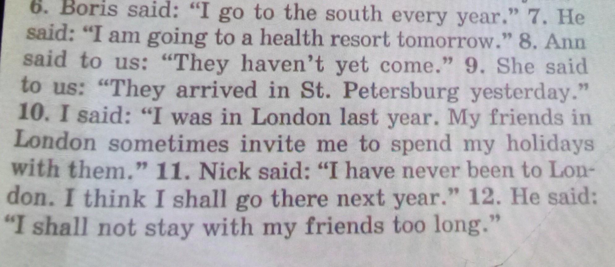 10 I said I had been in London the previous year and my friend from London sometimes invited me to spend my holidays with him.