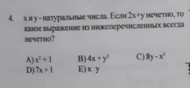В) 4х - четное, y^2 - тоже четное, поэтому выражение (4х+y^2) нам не подходит, т.к. сумма двух четных чисел - всегда число четное